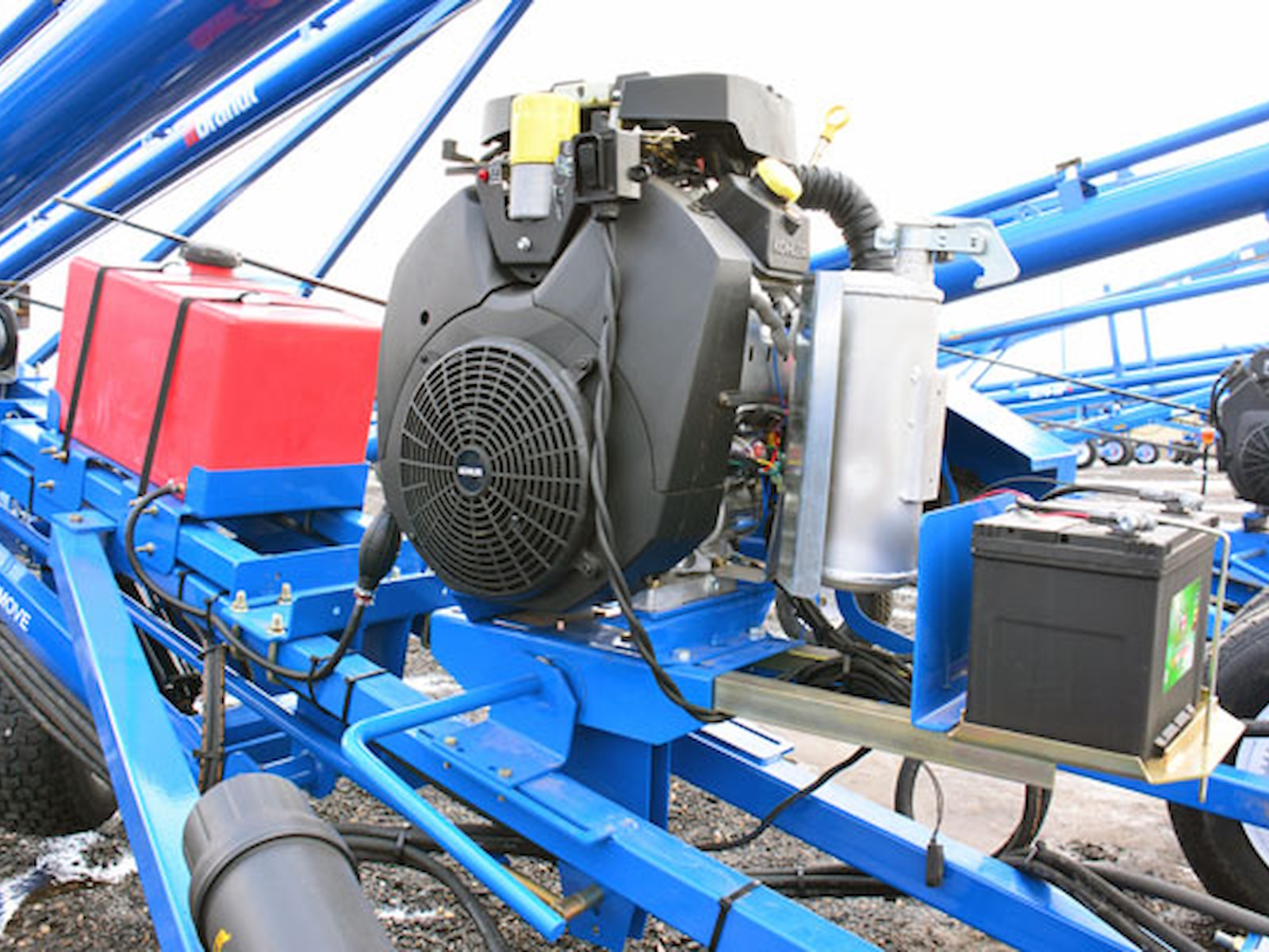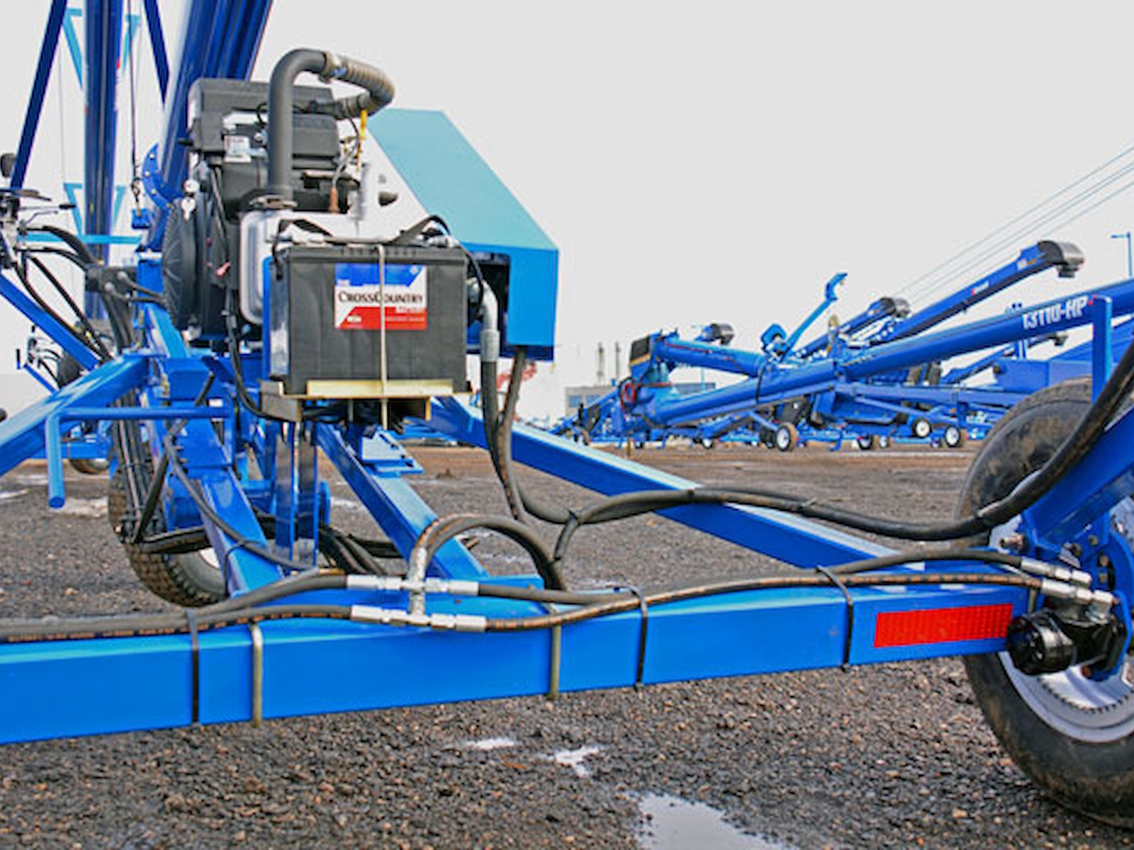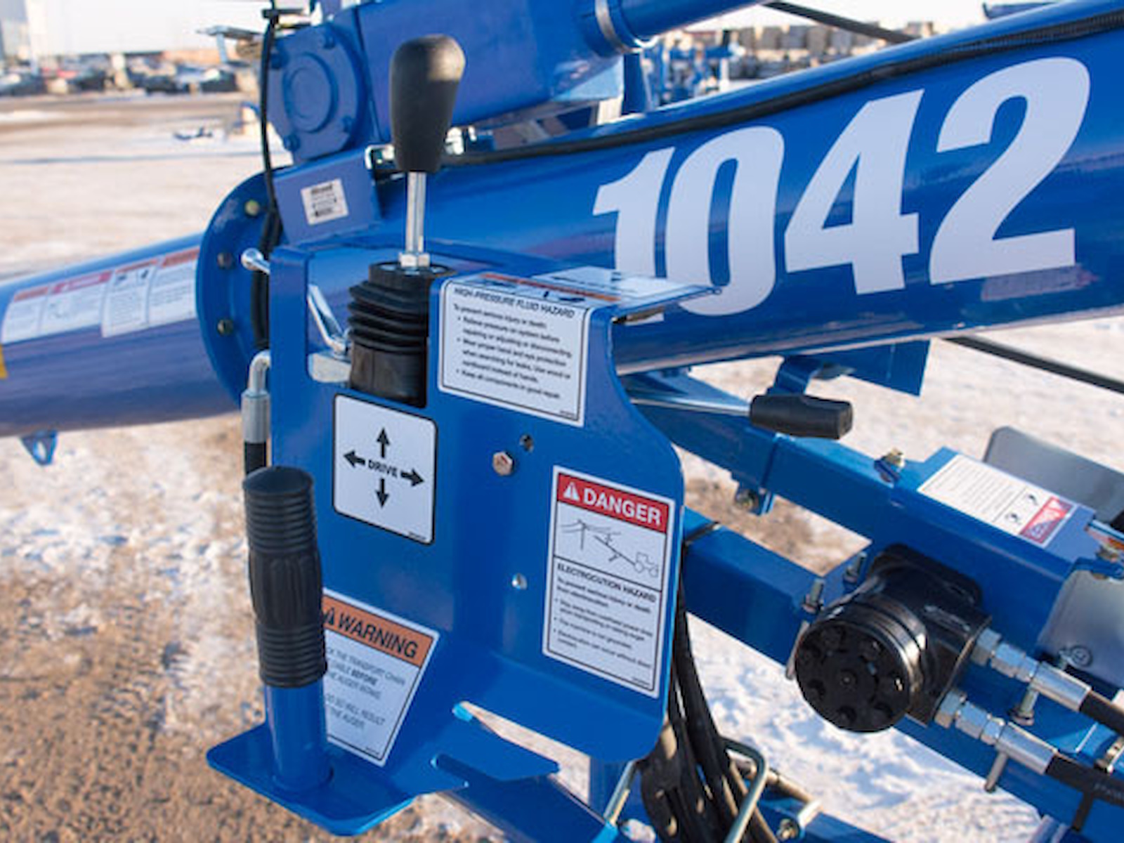 All Brandt Transport Auger mover systems come standard with a hydraulic winch and intake lift cylinder and are hydraulically powered using ring gear drives mounted to the auger wheels, allowing Brandt Transport Augers to move freely across any terrain.