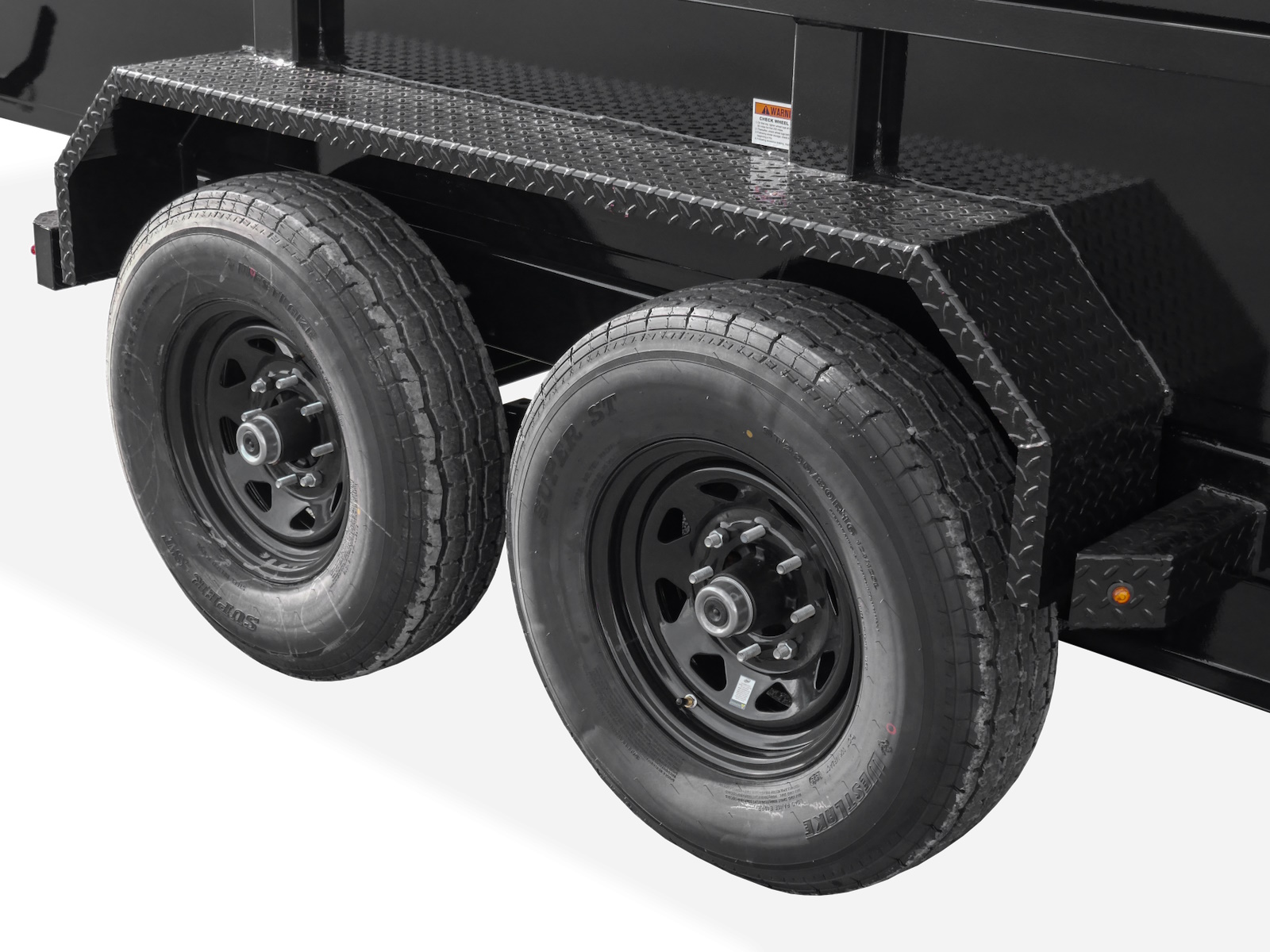 GAWR: 6000 | Jack: 12k Bolt-On Drop Leg Jack | Decking: 10-Gauge, Smooth Steel | Hydraulic Hoist: Telescopic, Power-Up, Gravity-Down | Dump Angle: 45°