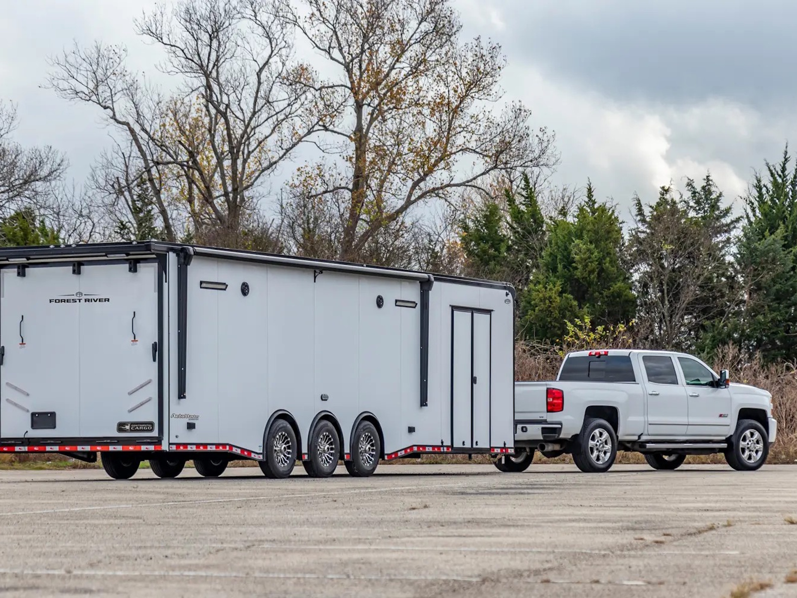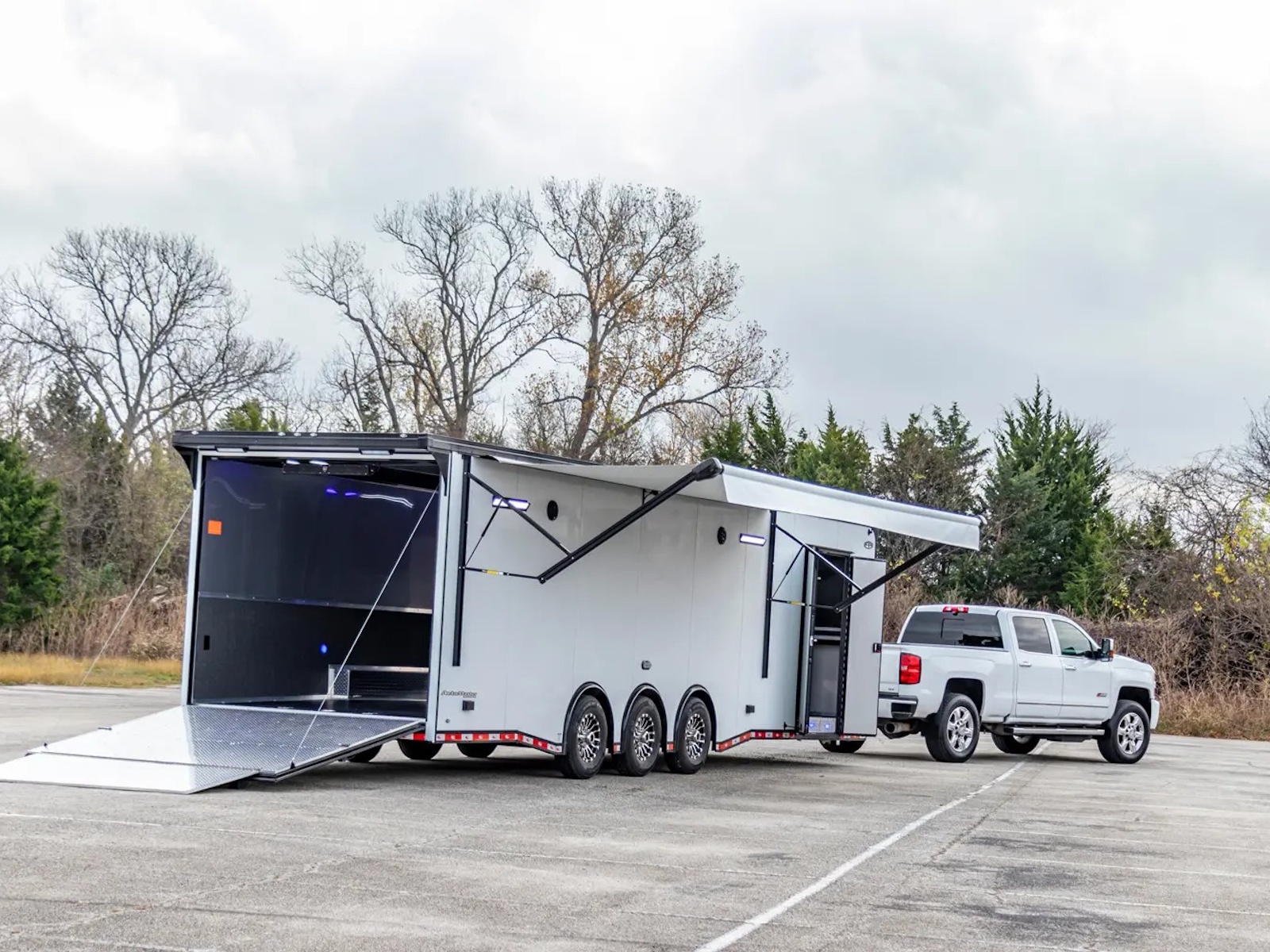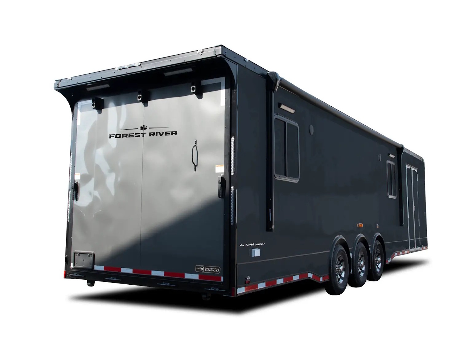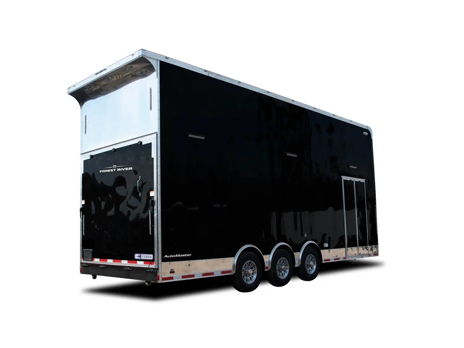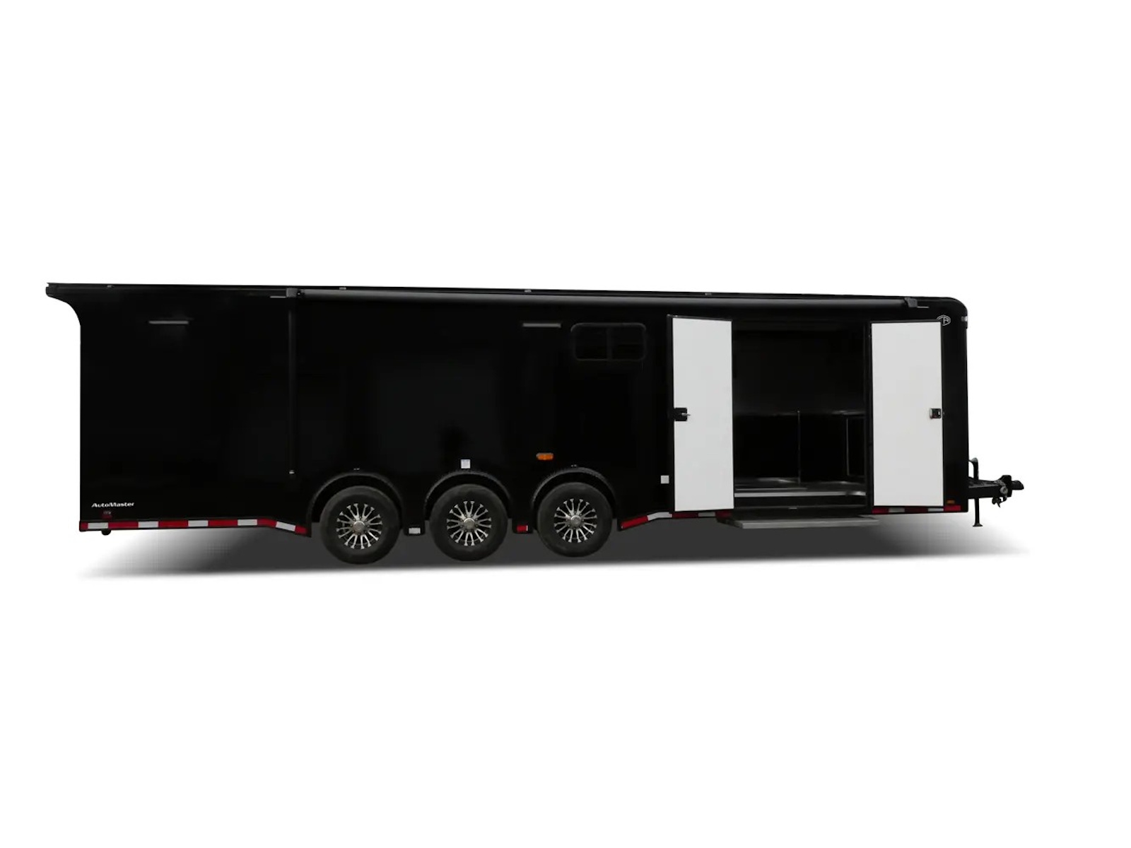 Auto Master auto haulers range in size from a 8.5’ x 18’ tandem axle to a 8.5’ x 48’ triple axle model. Electric brakes are standard on all Auto Master models. The standard payload capacities range from 2,680 to 6,674 lb. on tandem axle bumper pull models to 7,900 to 10,000 lb. on triple axle gooseneck models. A ramp door with no-show beavertail is standard on all Auto Master auto haulers.