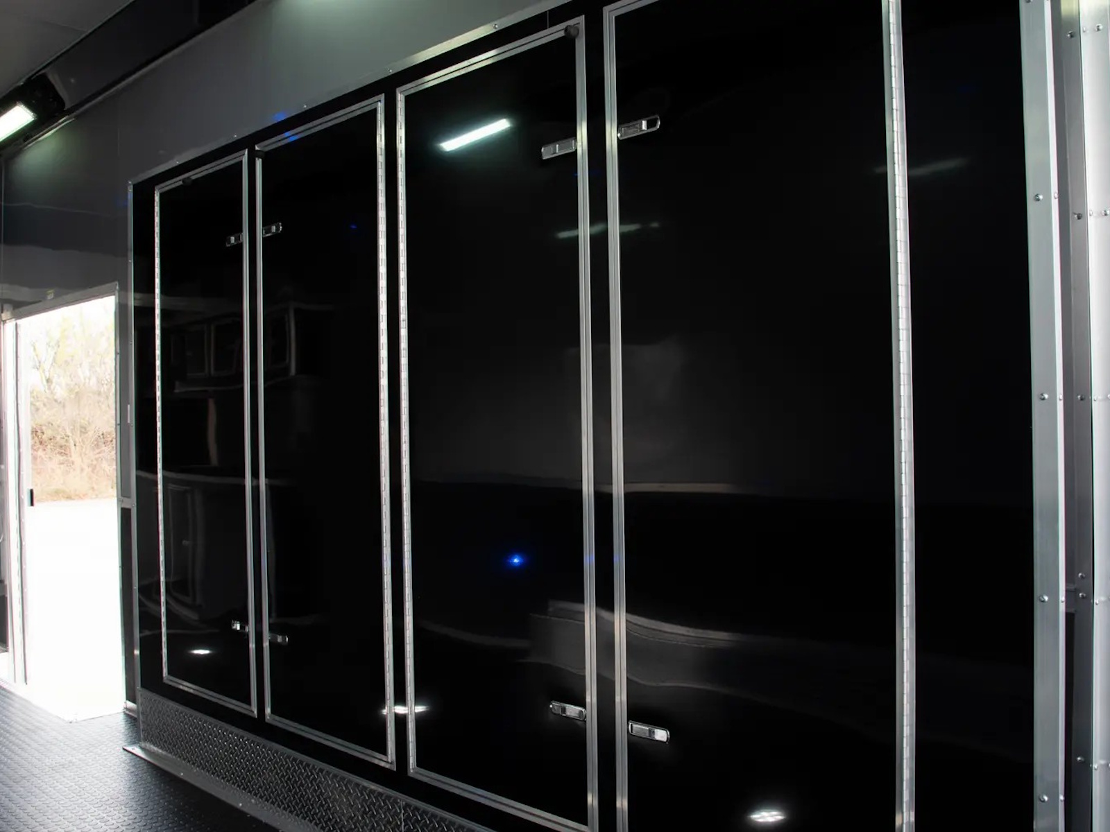 48" Side Door with Flushlock & Steel Step | Door Hold-Backs on All Doors | Safety-Spring Chains on Side Door | Semi-Style Camlock Door Latches