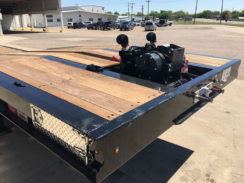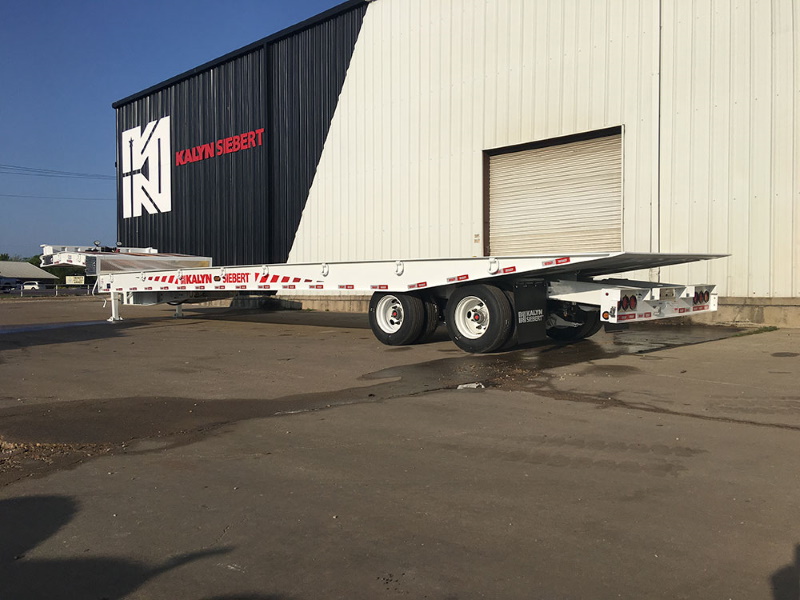 Kalyn Siebert Sliding Axle transport trailers are the right choice for towing low-clearance construction equipment, cargo containers, agricultural equipment, or pulling just about anything you can imagine where slide axle adaptability is an asset. A low 7-degree approach angle and a 20K neck-mounted winch make dragging damaged or disabled equipment onto the deck routine. Options like dock levelers, 6-function remote controls, 20HP power pack, bulkheads, and work lights allow these sliders to be as versatile as you need them to be.