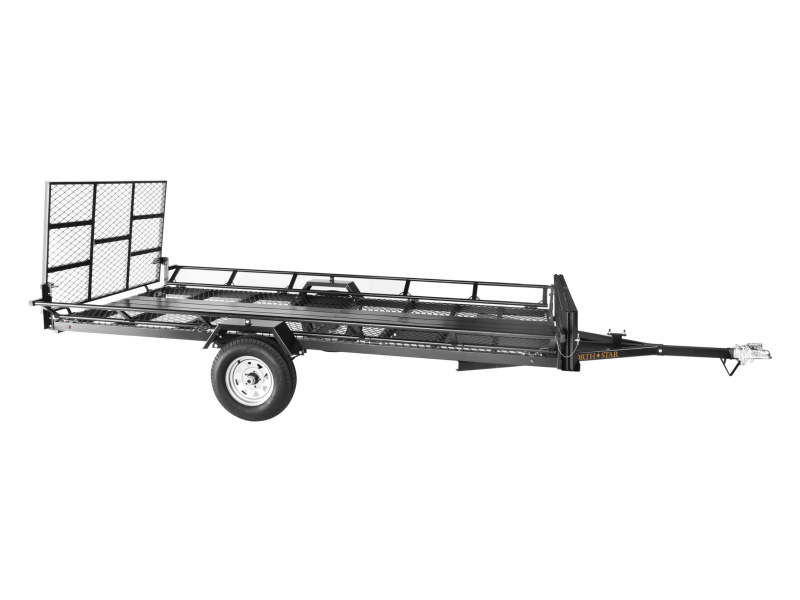 Leave no “toy” behind with the Sportstar III multi-use trailer. Easy side loading for “drive-on-drive-off” capability. Full-size rear ramp makes for a more universal trailer. This trailer has a steel frame for strength and a durable powder-coat finish. Spare-tire mount is located on the top of the tongue to accommodate a spare tire, jack stand and gas can rack. Ramp gate with side-loading ramps. Multi-leaf springs. DOT-approved lighting.