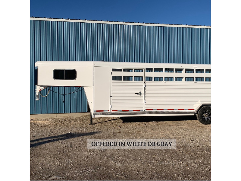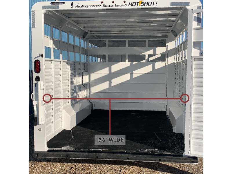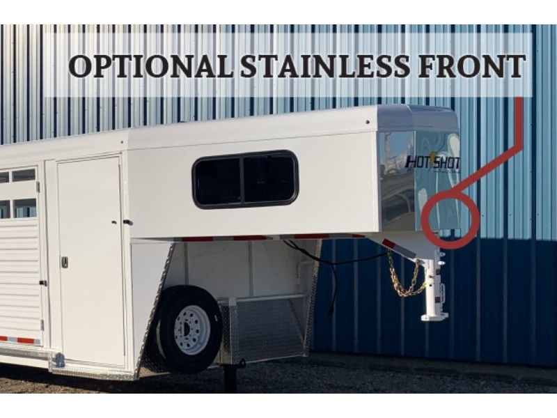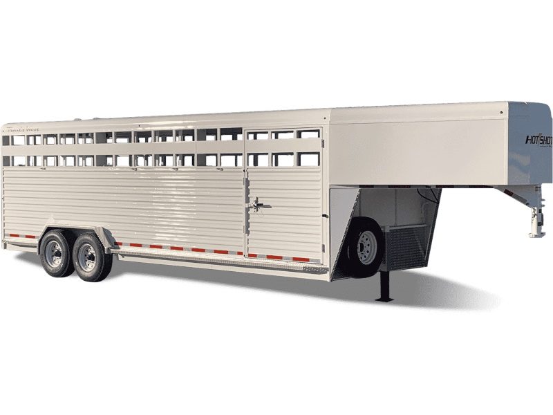 Our Hot Shot gooseneck trailer is a 7’6″ wide x 7’ tall livestock trailer. The design of this trailer has electro-galvanized seamless corrugated steel sides for strength and durability. This extra-safe stock trailer is light weight and built for safety. This is a great pulling trailer because of the aerodynamic design of the front, cutting the wind while still providing enough space in the gooseneck area for an optional tack package. Check out this great priced trailer that is built for real stock men and women.