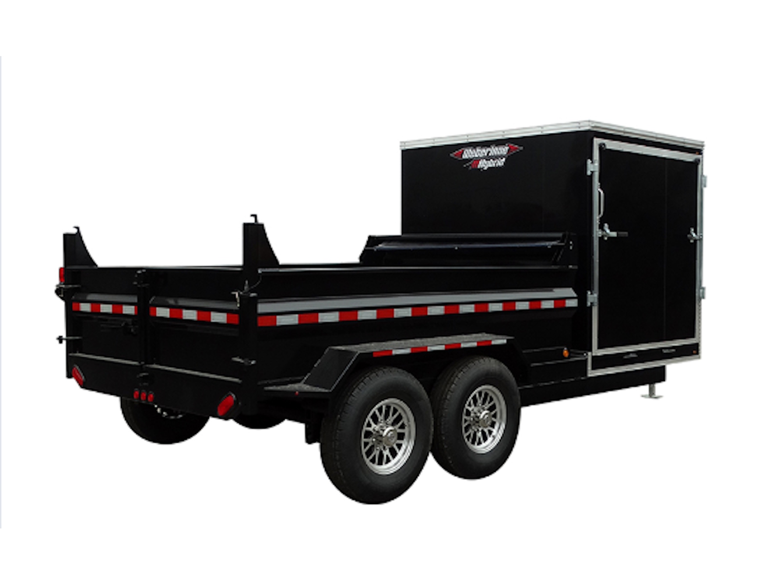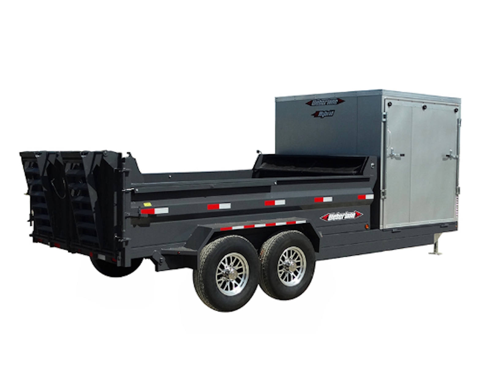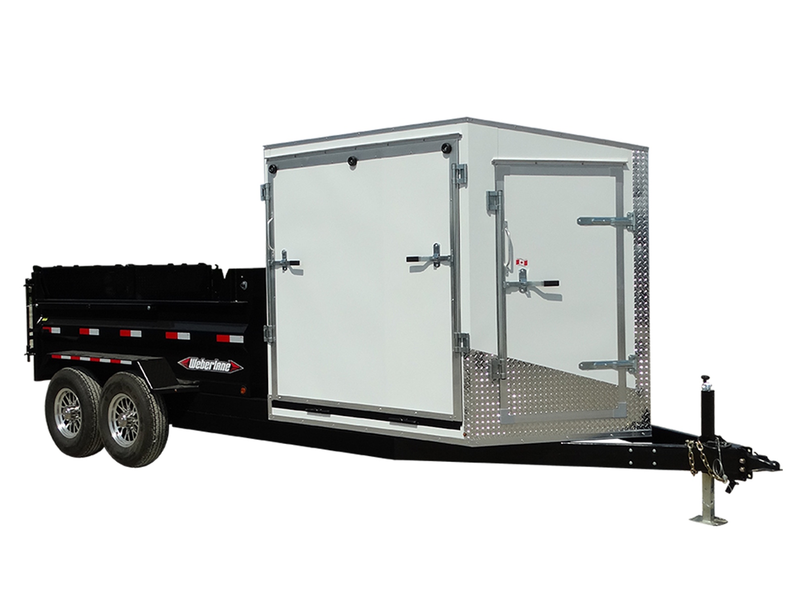 Each trailer is equipped with a shielded roll tarp ensuring secure coverage and lightweight aluminum rims. Perfect for all your transporting needs, our combo trailers combine practicality with quality craftsmanship.