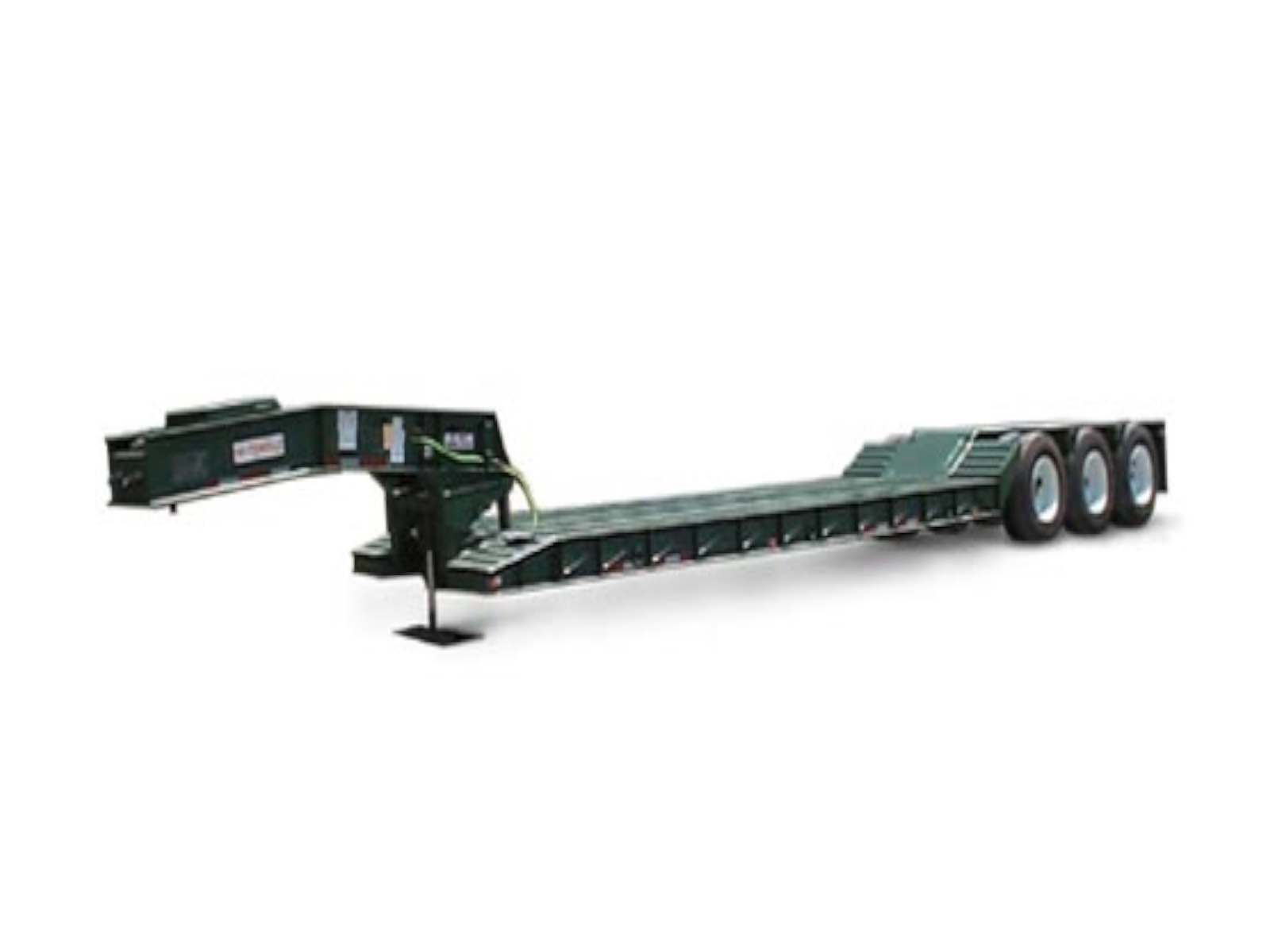 RG 52 Standard Features – 104,000# load capacity, 3 axles with 48′ overall length. Removable gooseneck, 8’6″ wide, level deck style. Ground bearing, 2 angle scraper gooseneck with self-contained hydraulic system. 22′ load deck, tapered front beam, 2″ lumber decking & (24) 12″ outriggers (12 each side). 3 “D” rings per side of deck & 2 on front stumps at tire area. Hutch 9700 spring suspension, 25,000# capacity axles, 16.5″ x 7″ air brakes, unimount wheels with 255/70 R22.5 Radial tires. Modular wire harness, rubber mounted sealed lites, DOT approved.