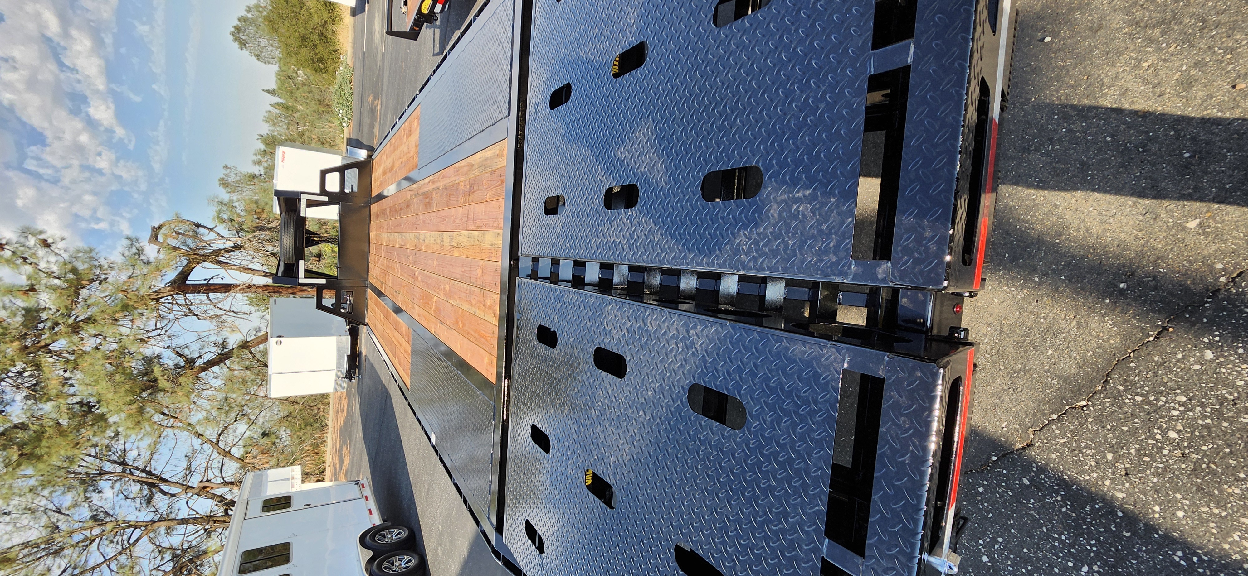 Built for versatility and performance, this gooseneck trailer features a spacious 8’6″ x 25′ deck with a 20′ flatbed and 5′ dovetail, offering easy loading for equipment, vehicles, or materials. It also has a heavier frame, tandem dually axles, and a two-speed jack system.