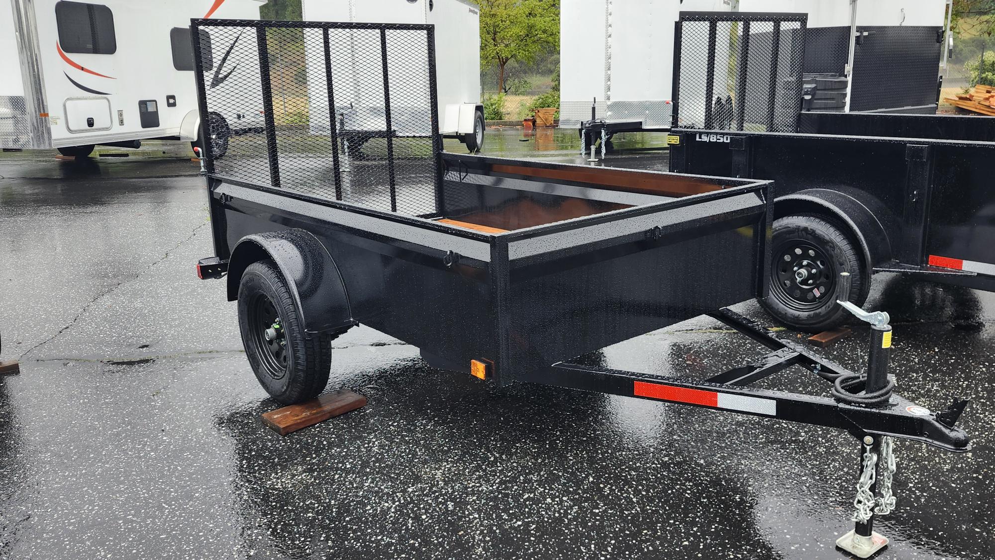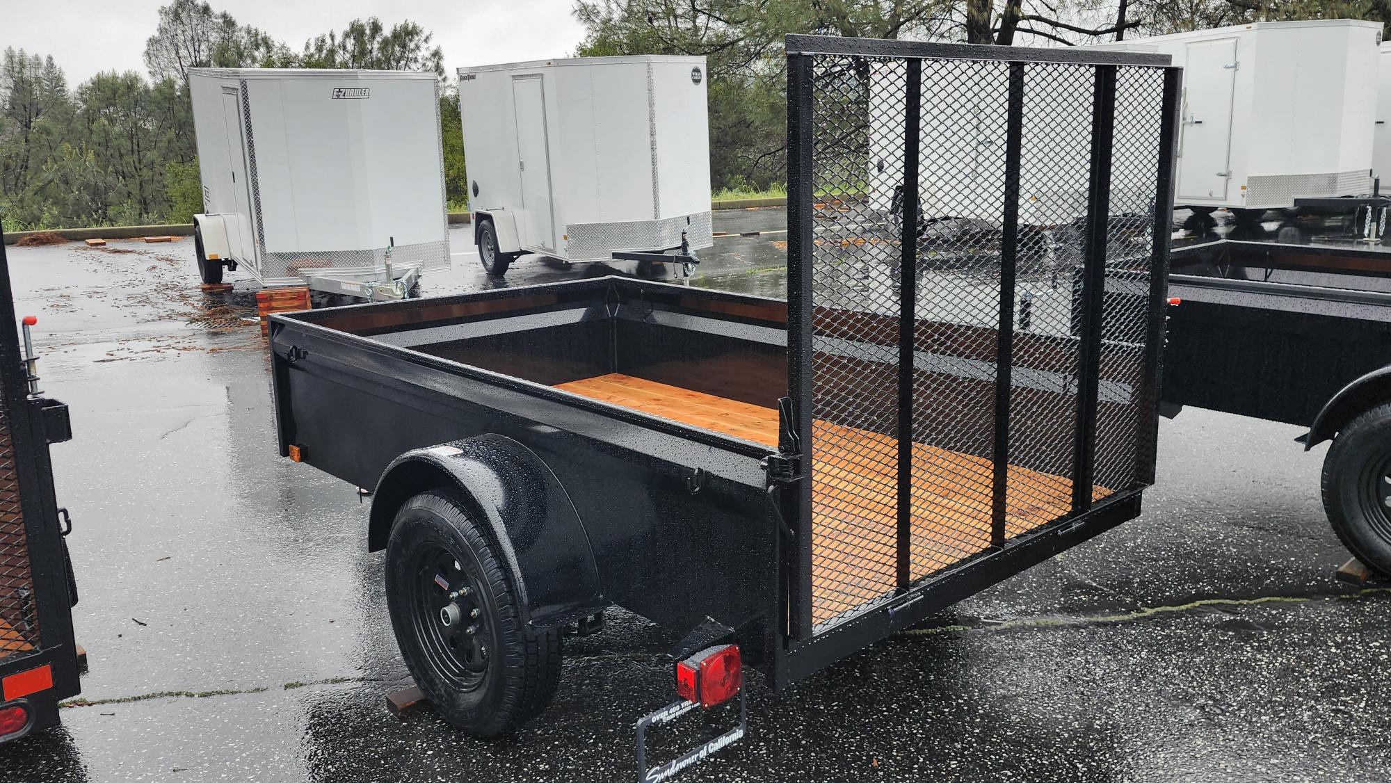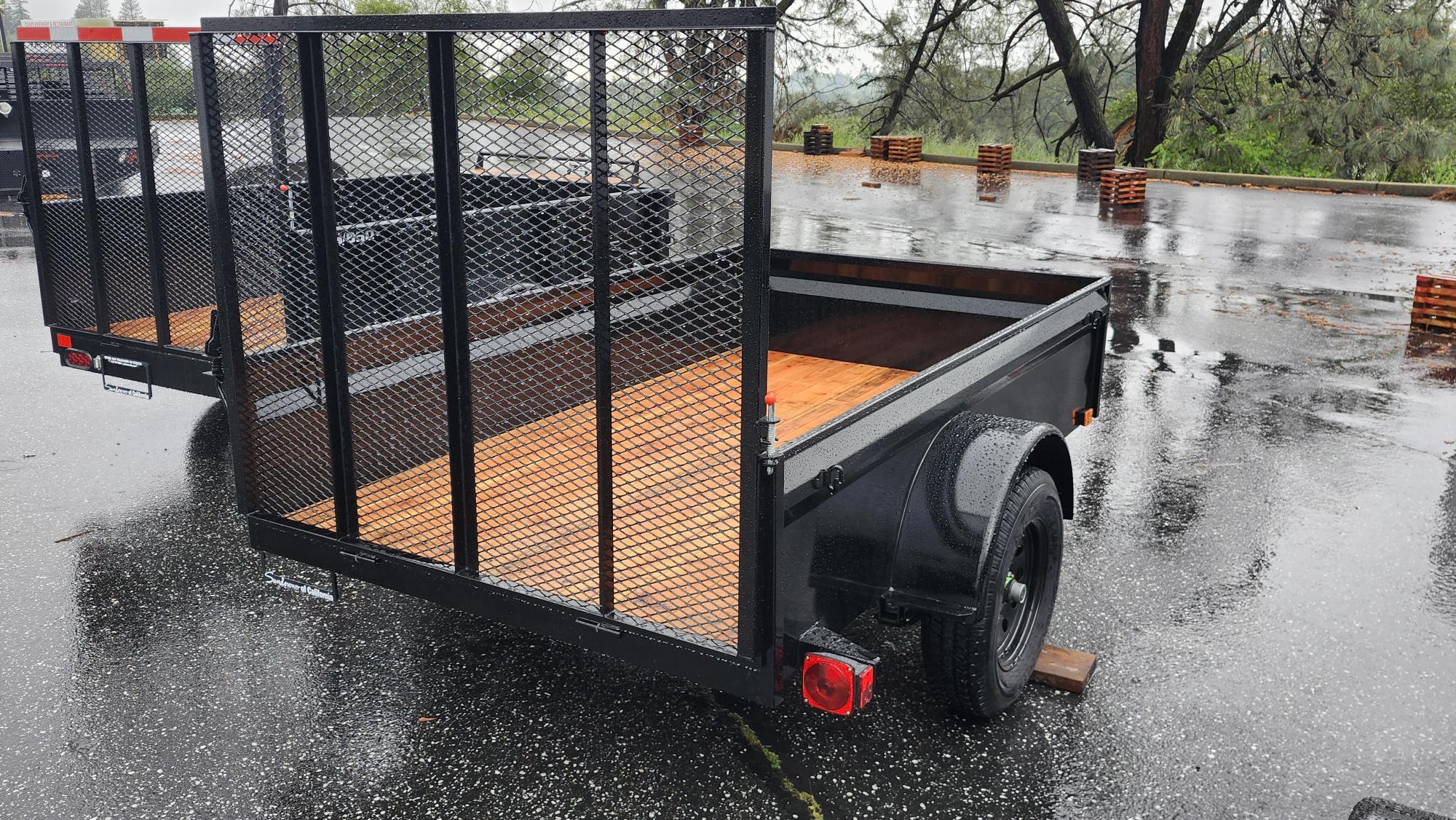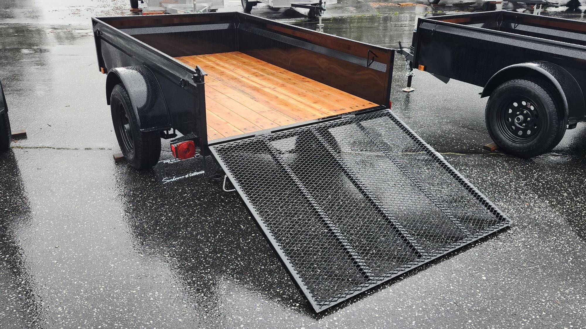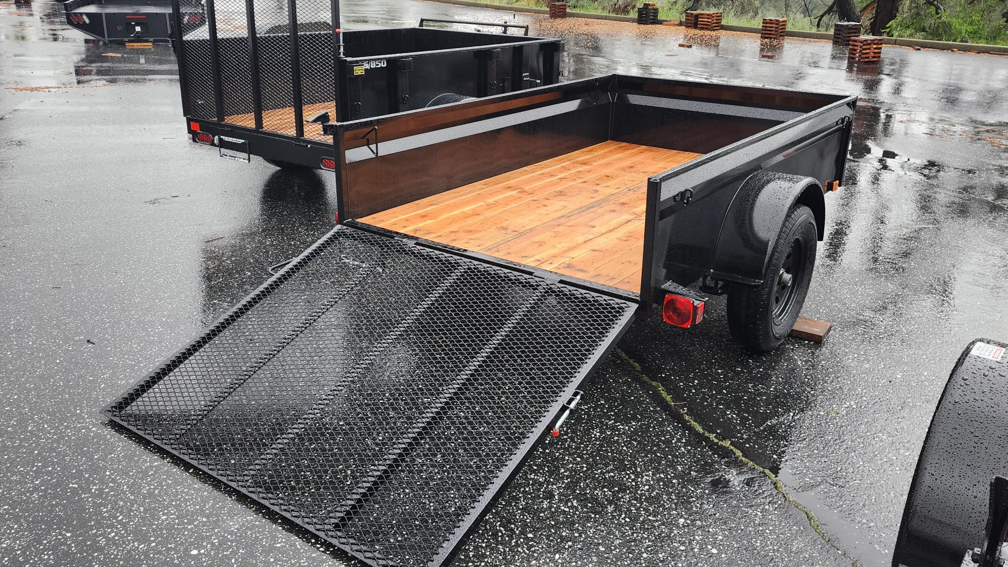 Super lightweight utility trailer designed for small tow vehicles. Angle iron frame keeps weight down without sacrificing strength. Features a 3500 lb idler axle, 2” A frame coupler, 2K jack, Jeep style incandescent lights, and 15” 5 lug radial tires. Pressure treated Douglas Fir deck with tarp hook tie downs and a 4’ expanded metal ramp.