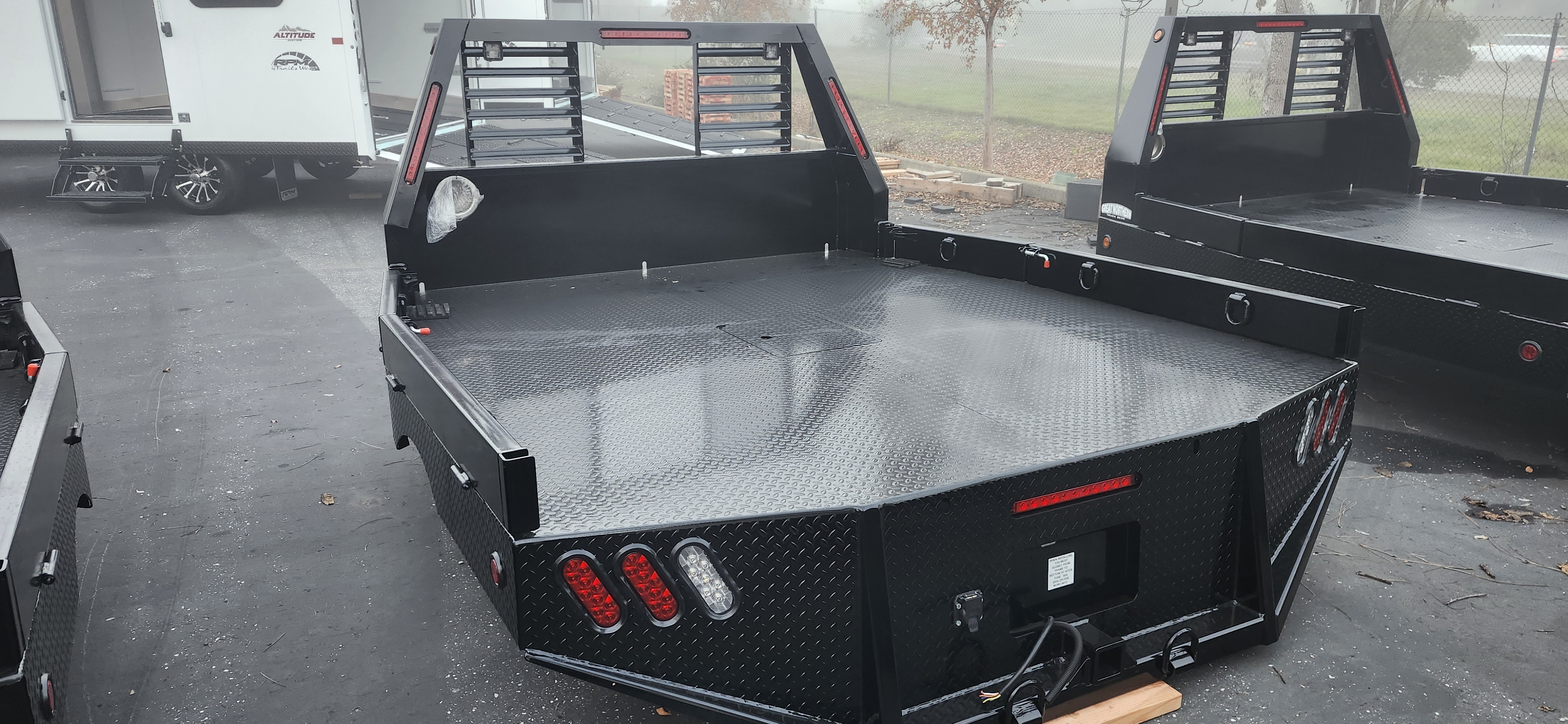 High grade quality construction flatbeds for any brand. Our standard build and quality you trust with LED lights, 7 way RV sockets at the rear apron and up top for the undermount gooseneck hitch. features an added 2.5" receiver