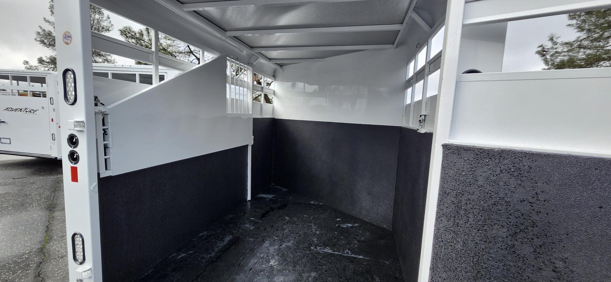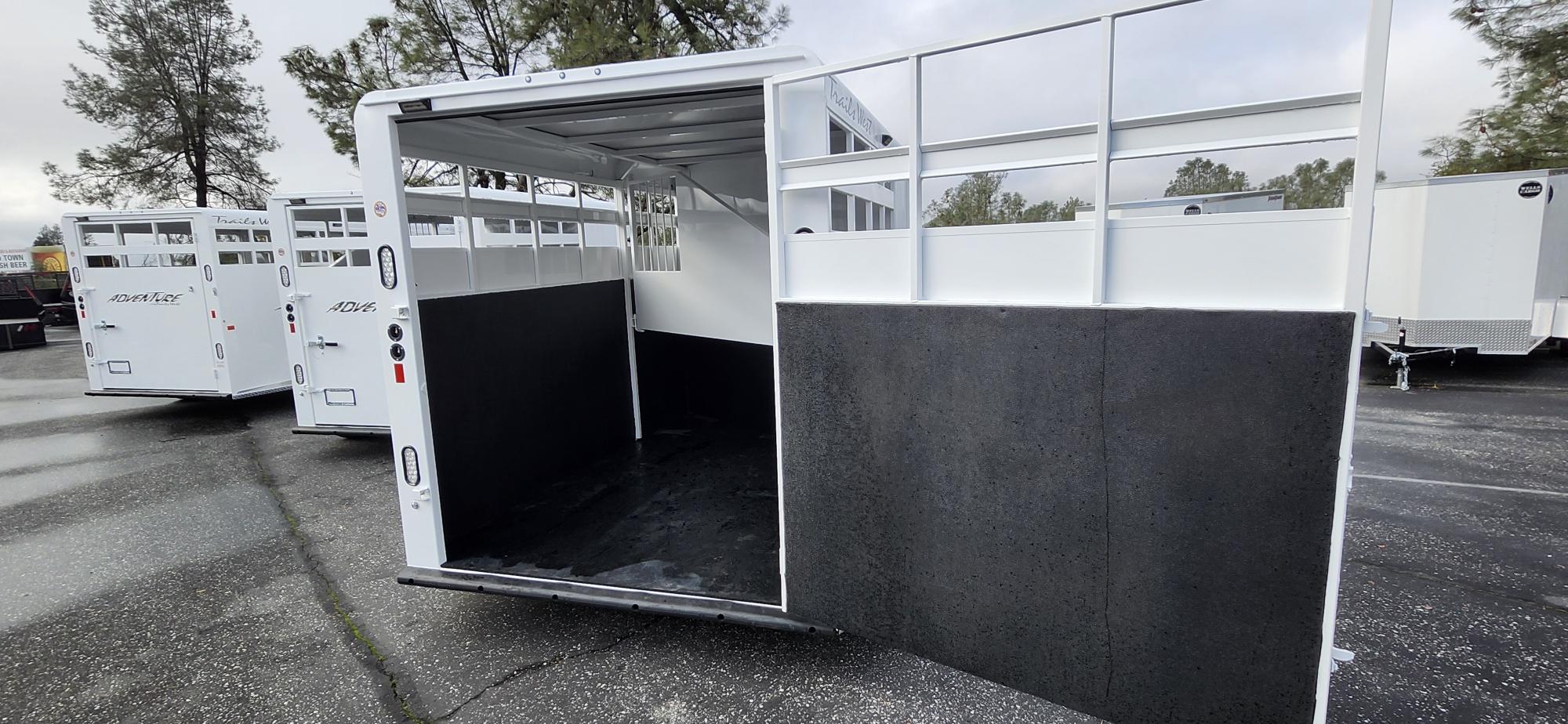 The Adventure is Trailswests most economical horse trailer and is loaded with standard features, making it one of the best values in the industry. This trailer features double air gaps on head and tail side and measures 6’9″ wide and 7’0″ tall. It comes standard with horse dividers, rubber floor mats and 48″ tall rubber wall mats surrounding the entire horse compartment.