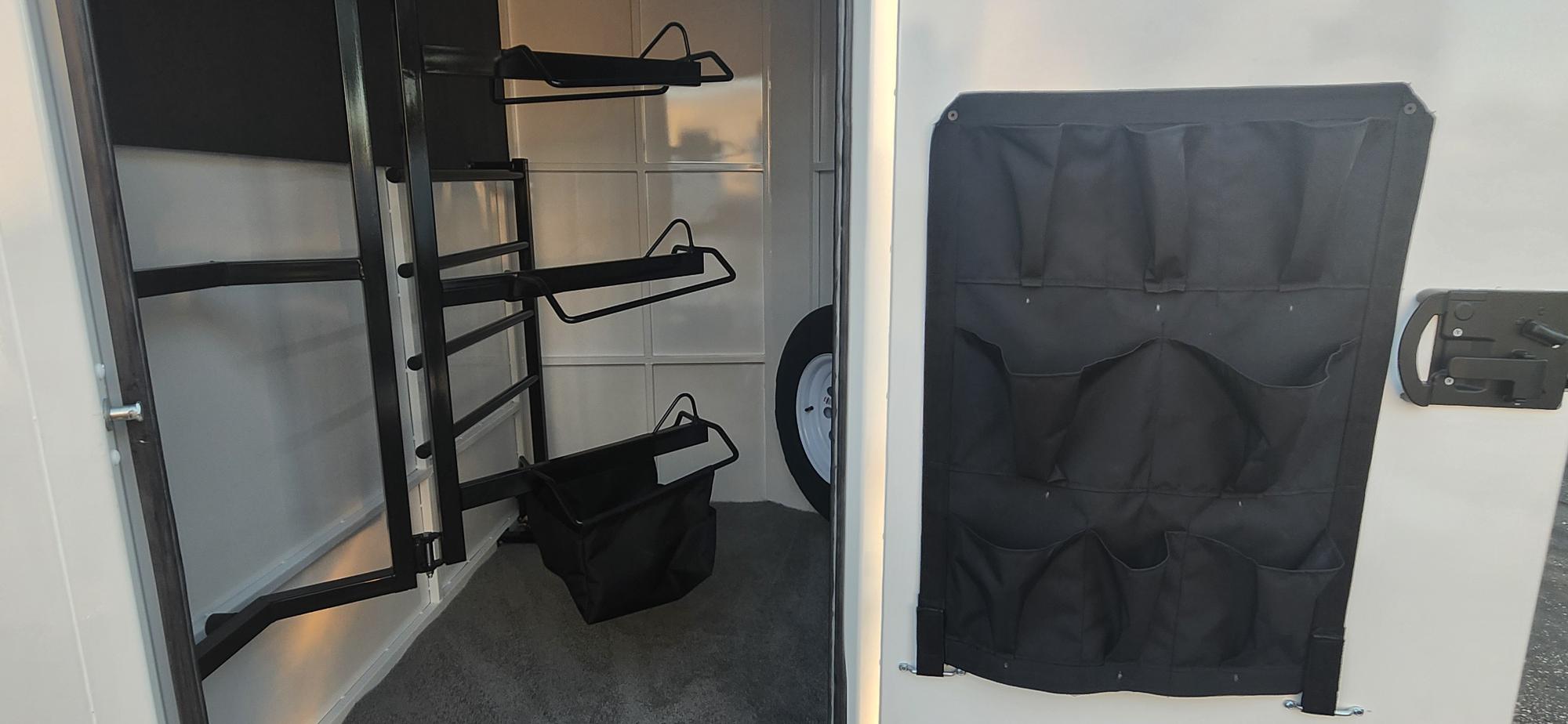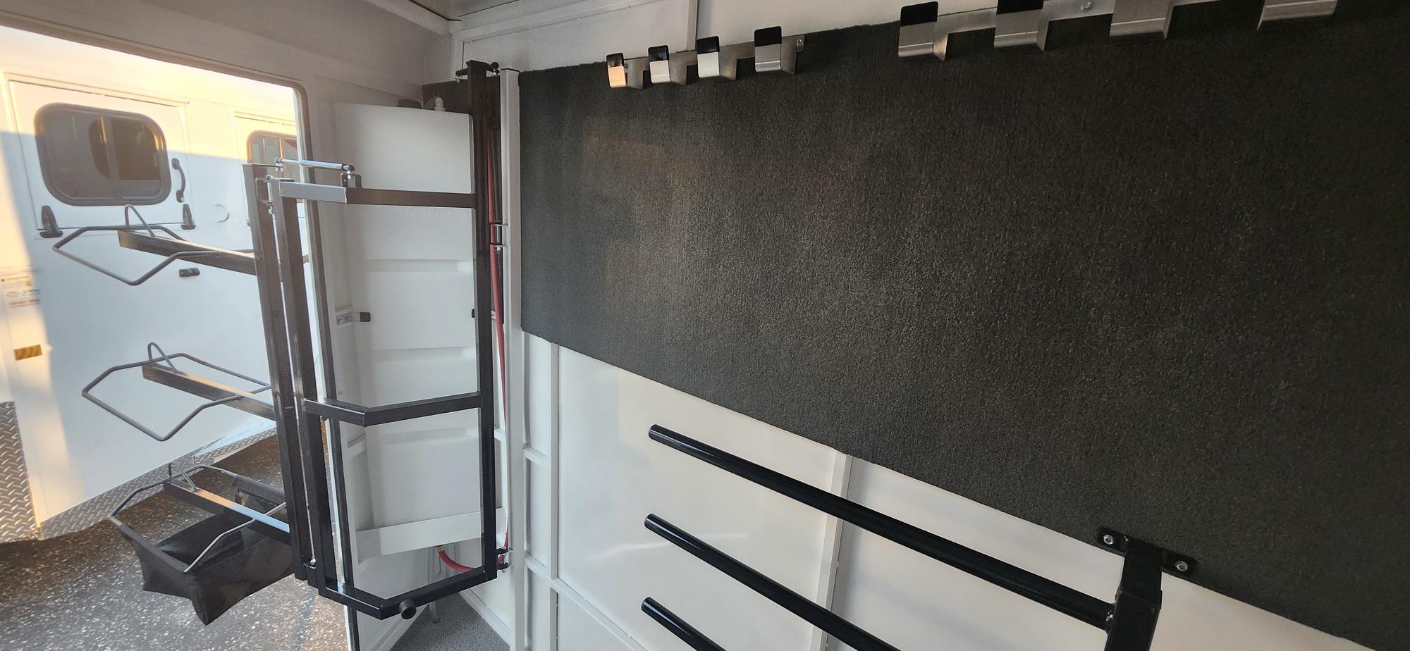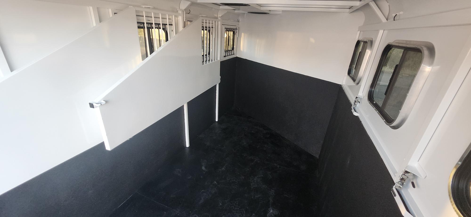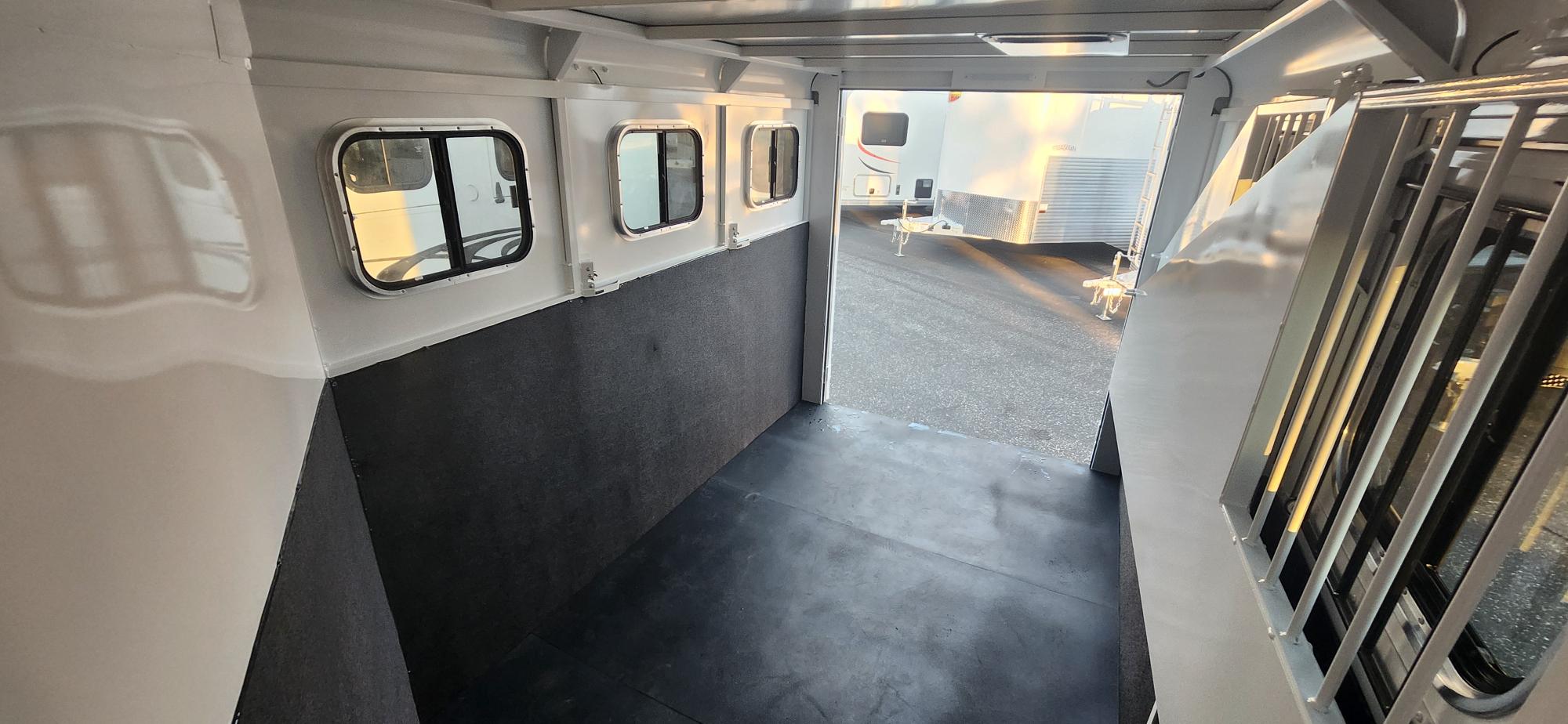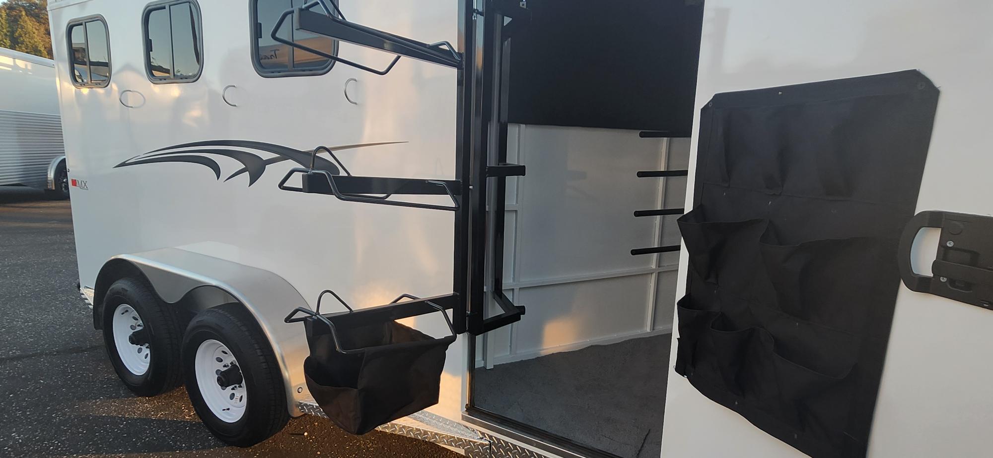 Bumper Pull Horse Trailer with tack room. Fully enclosed horse compartment with drop down feed windows head side, tail side windows and roof vents in each stall. Rubber floor mats and walls mats.