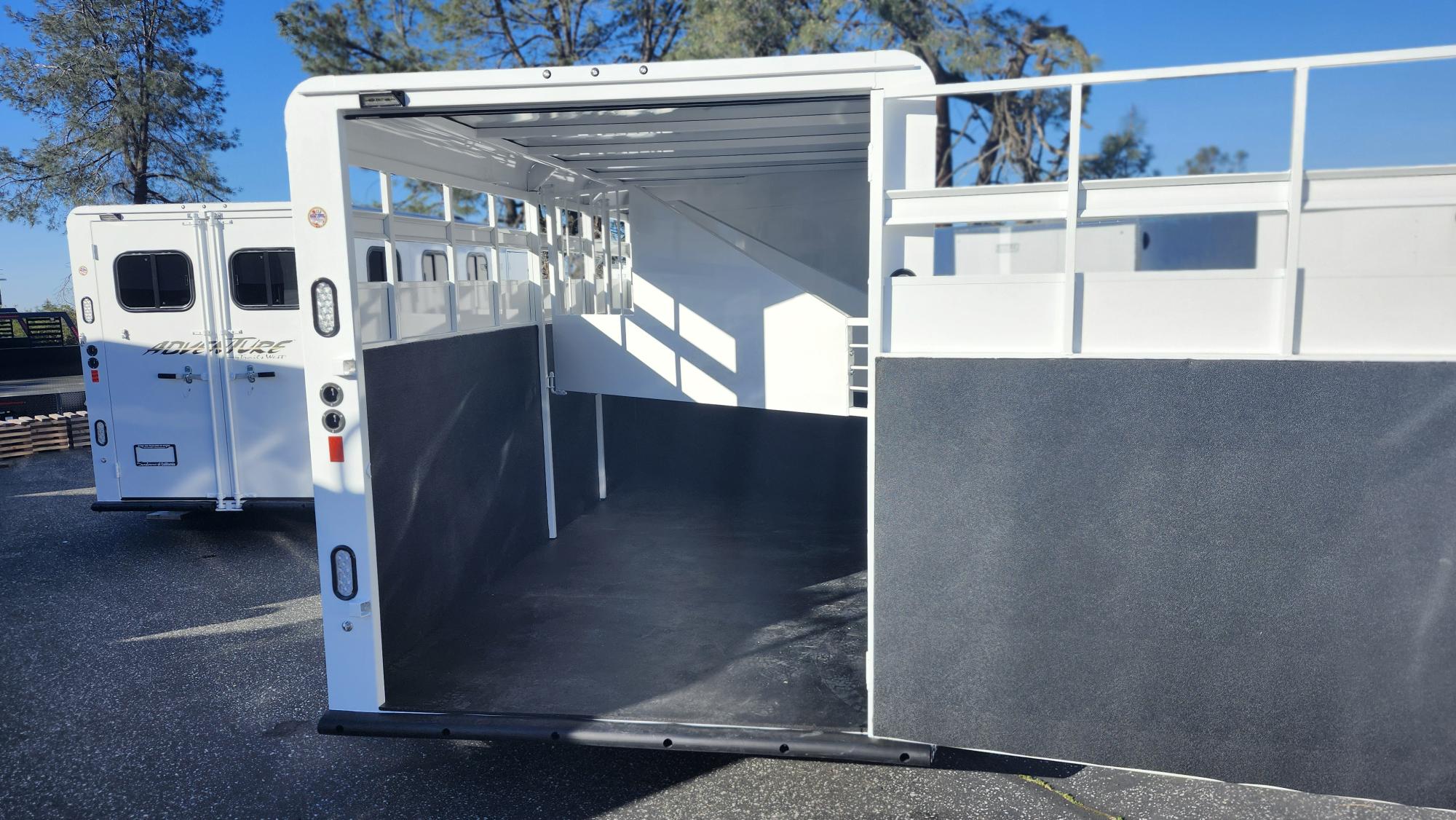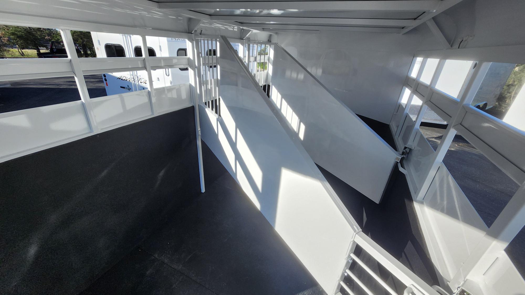The Adventure is our most economical horse trailer and is loaded with standard features, making it one of the best values in the industry. This trailer features double air gaps on head and tail side and measures 6’9″ wide and 7’0″ tall. It comes standard with horse dividers, rubber floor mats and 48″ tall rubber wall mats surrounding the entire horse compartment.