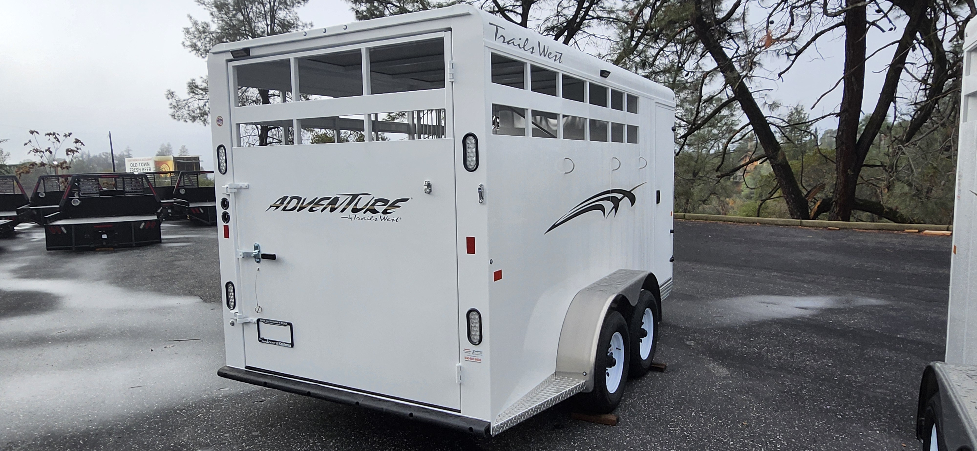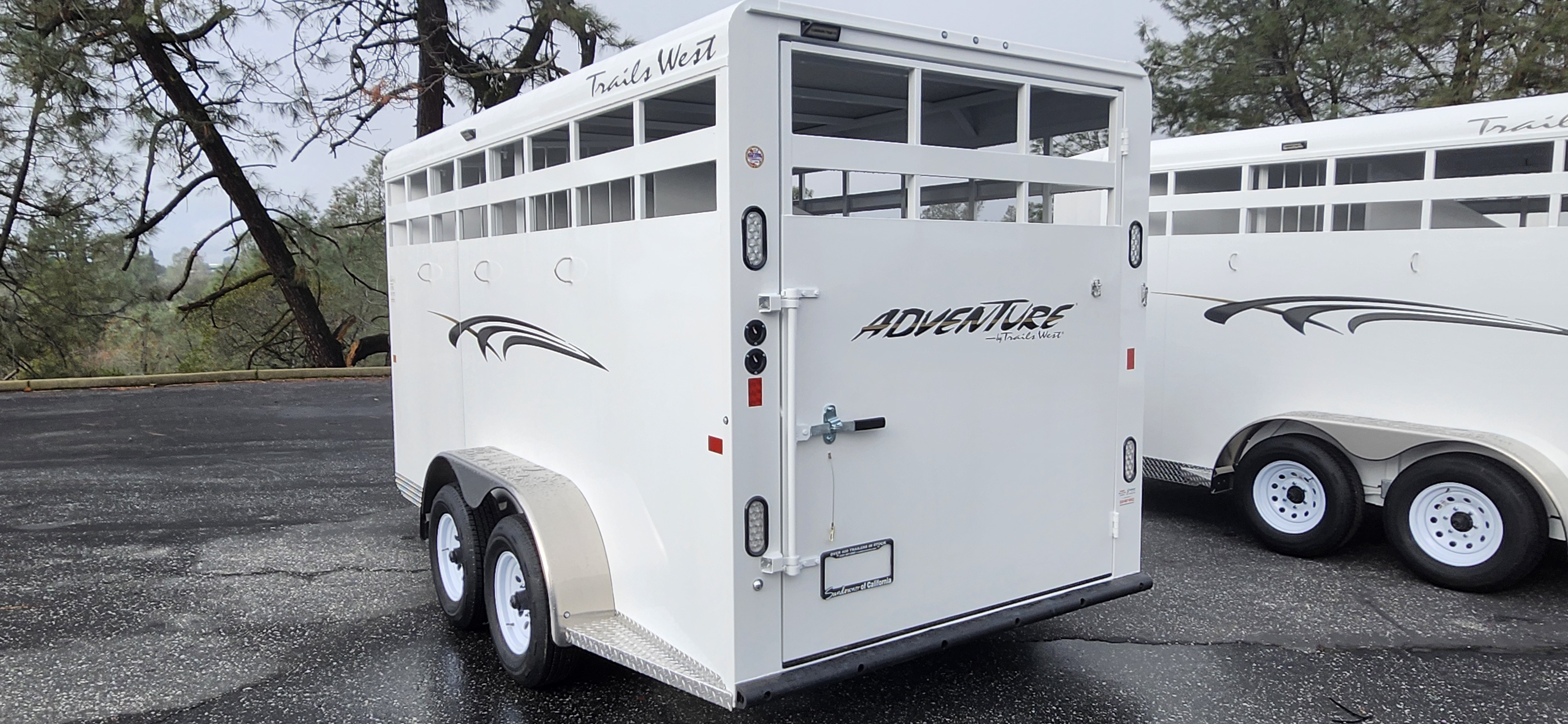 The Adventure is Trailswests most economical horse trailer and is loaded with standard features, making it one of the best values in the industry. This trailer features double air gaps on head and tail side and measures 6’9″ wide and 7’0″ tall. It comes standard with horse dividers, rubber floor mats and 48″ tall rubber wall mats surrounding the entire horse compartment.