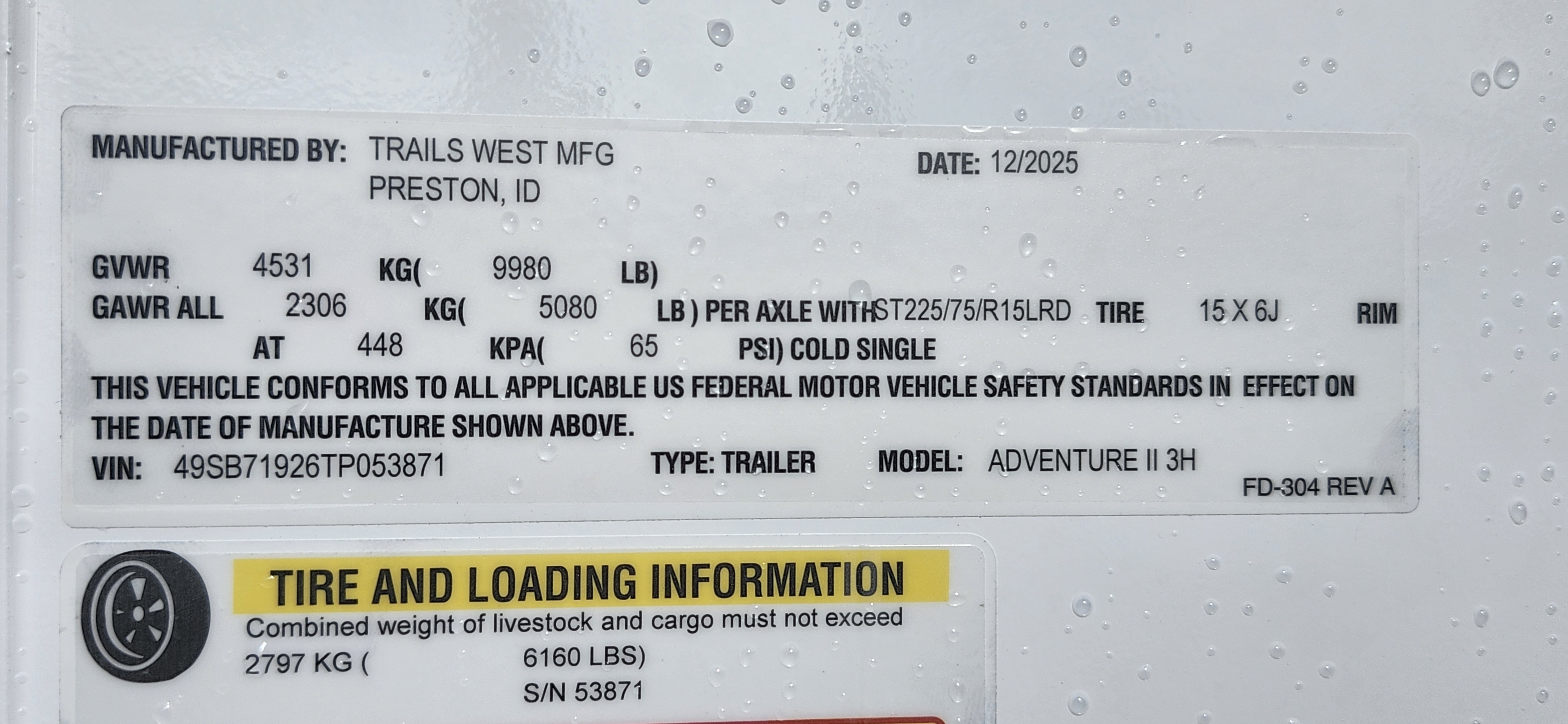2026 Trails West BP 3H ADVENTURE - TW53871