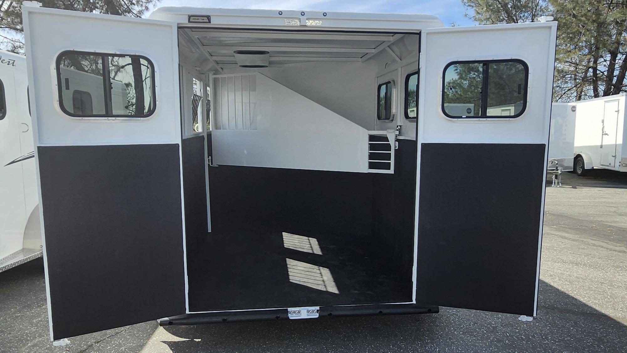 The absolute best value for your dollar. The Aluminum skin and steel frame Adventure is ready for you and your horses. Tack up with ease with the swing out saddle rack, water tank, drop feed doors and tailside windows.